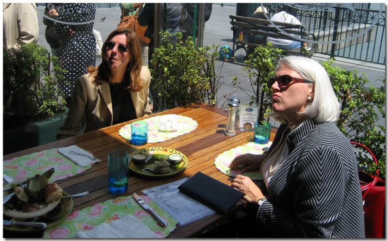 Napa-Sonoma 2006 -- Jane and Katherine listen to the waiter at a restaurant in the Ferry Terminal building in SF.