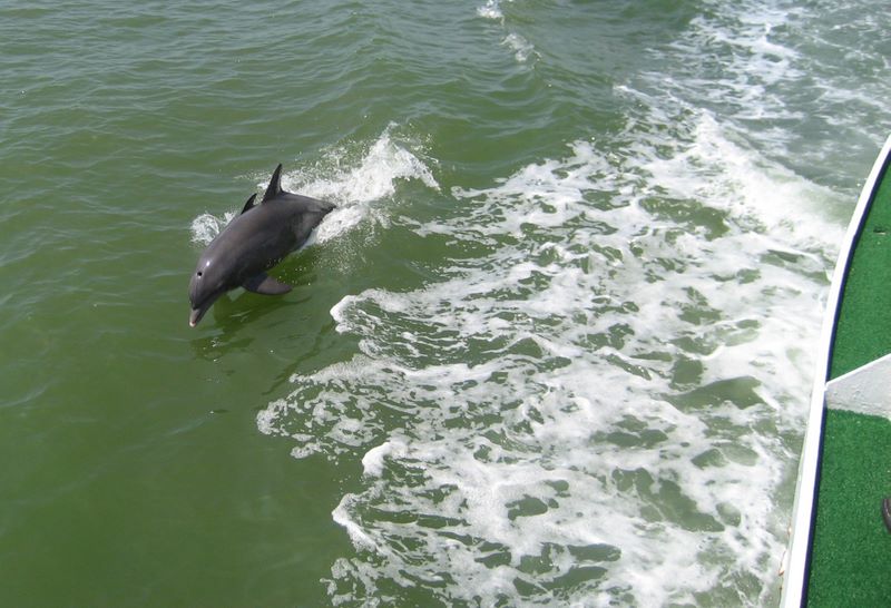 Sanibel 2007 -- Dolphin in the boat wake