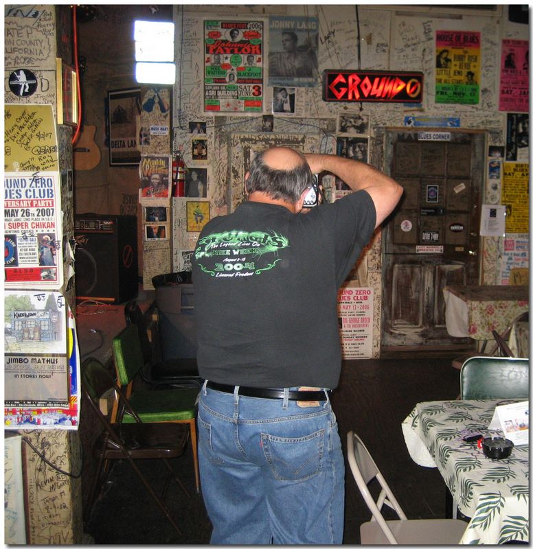Blues Tour 2007 -- Charlie taking a picture inside the Ground Zero Blues Club in Clarksdale.