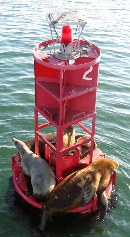 Long Beach 2007 -- Sea lions rest on a harbor buoy
