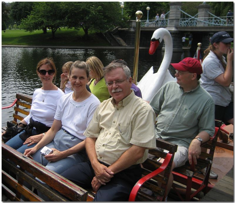 New England 2007 -- Jane, Pattie, and Slaton on the Public Garden Swan Boats