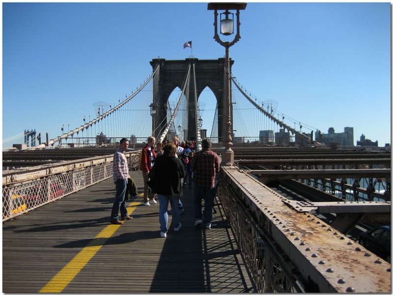 NYC 2006-10 -- Walking the Brooklyn Bridge.