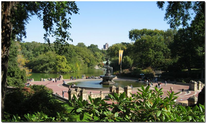 NYC 2006-10 -- Lake and fountain in Central Park.